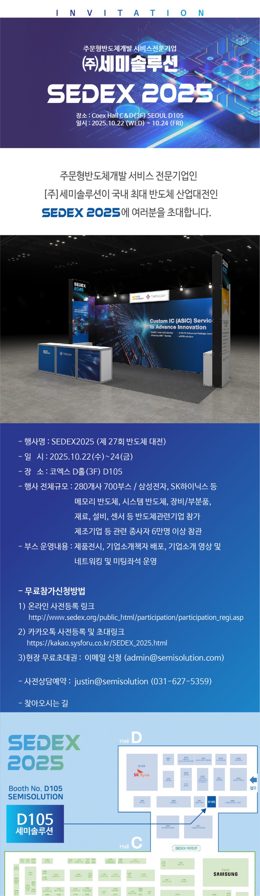 SEDEX 2025 세미솔루션 부스 안내의 건입니다.